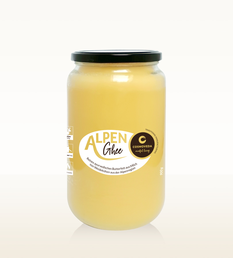Reines ayurvedisches Butterfett aus Milch von Weidekühen aus der Alpenregion.