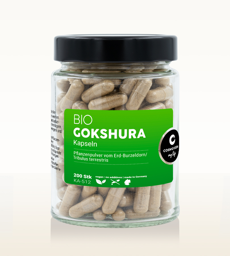 Gokshura - Tribulus terrestris - ist ein sich am Boden ausbreitendes, ein- bis zweijähriges bis zu 90cm hohes Kraut mit paarig gefiederten Blättern, gelben, der Butterblume ähnlichen Blüten und kugelförmigen Früchten. In der ayurvedischen Ernährung werden alle Teile der Pflanze verwendet. Das in unserer Produktion fein und schonend (unter 40°C) vermahlene Pulver aus den Früchten stammt aus unseren Indischen und Srilankesischen Fair Trade und Bio Projekten.